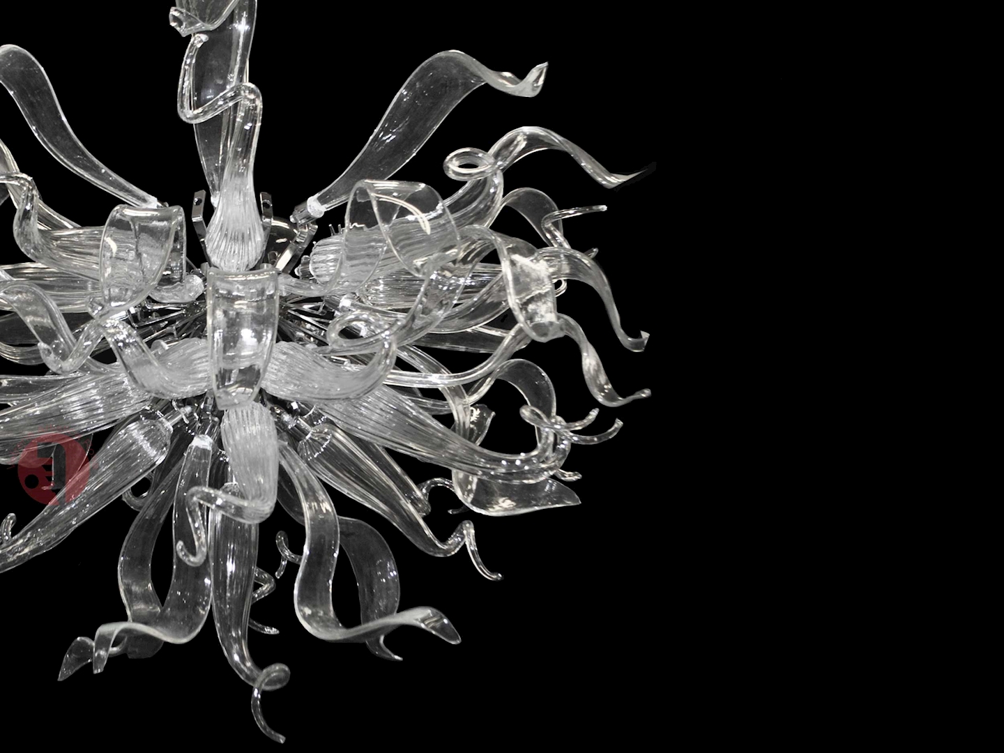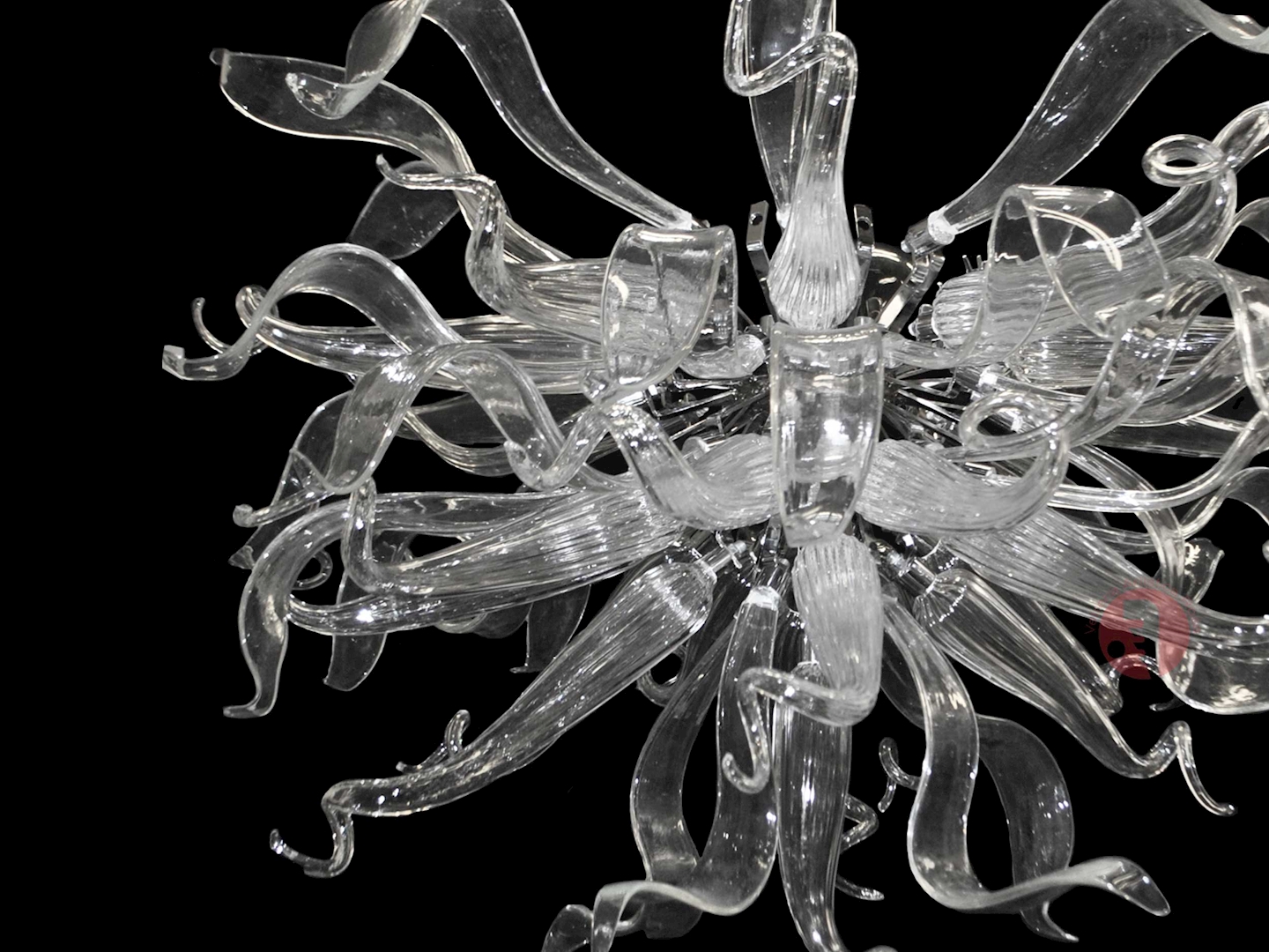 La sua forma avvolgente nasce da un intreccio continuo di elementi in vetro soffiato, modellati uno a uno da mani esperte, come se seguissero un movimento naturale, senza inizio né ... altro>>